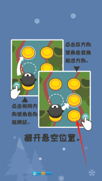 2、游戏开始时会有操作教学环节,需要记住两种点击方式:点击与角色当前前进方向相同的位置,角色会向前跳跃;点击相反方向,则能切换角色的前进方向。建议跟着提示多加练习,过程中要注意避开悬空的位置,避免角色掉落。