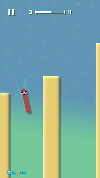 2.你能够通过手指滑动屏幕,或是按压屏幕的方式,让香肠飞出去并黏附在障碍物上。