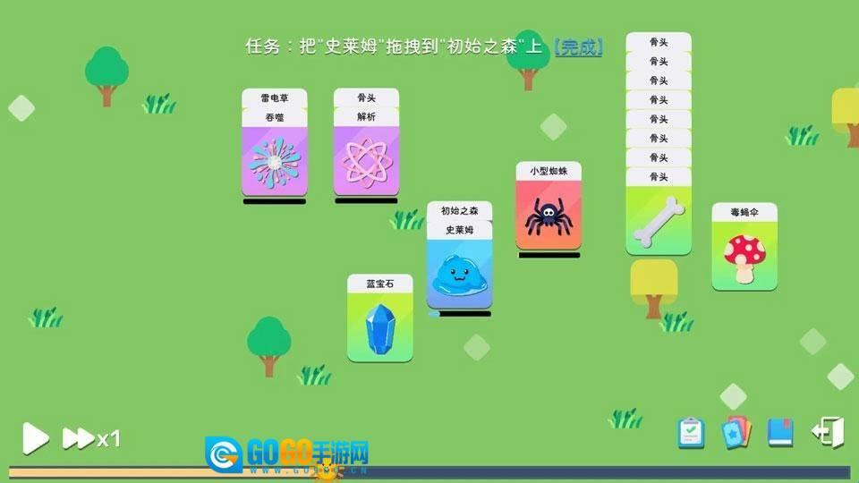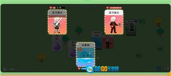 2、结合生存需求与战局特性,筛选攻击、防御、辅助类卡牌来优化卡组,解锁卡牌连招,增强史莱姆的生存与战斗能力。