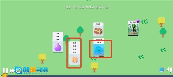 3、将经验卡拖到史莱姆卡上可以让史莱姆获得经验。