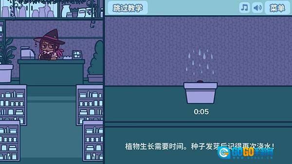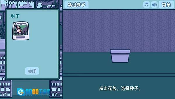 3、如图所示,进入教学界面后,点击花盆即可选择要种植的种子。