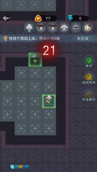 2、建议优先对铁门和床铺进行升级,铁门能够有效阻拦敌人,而床铺的等级越高,获取的金币数量就越多。