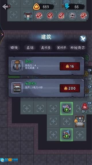 3、建造炮台以抵御敌人,仅能在房间内的空地板上进行操作。玩家点击空地板后,会弹出建筑菜单。