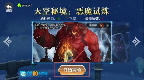 2、选择试炼挑战:在游戏模式的选择界面中,找到并点击“天空秘境:恶魔试炼”这一选项,即可开启相应的挑战内容。