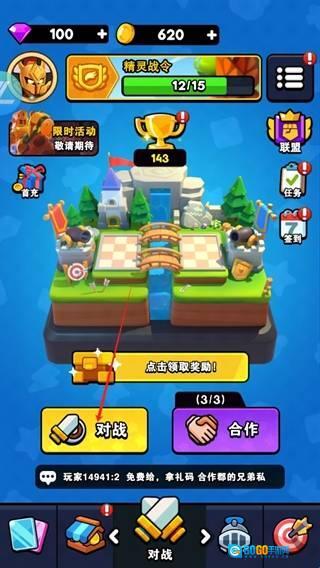 1、启动后,选择“对战”模式,进入竞技场。