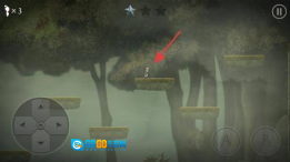 3、通过按键操控角色,在森林场景里跳跃跨越石质平台,顺着路径展开探索