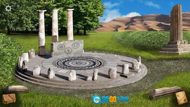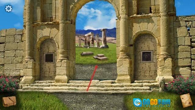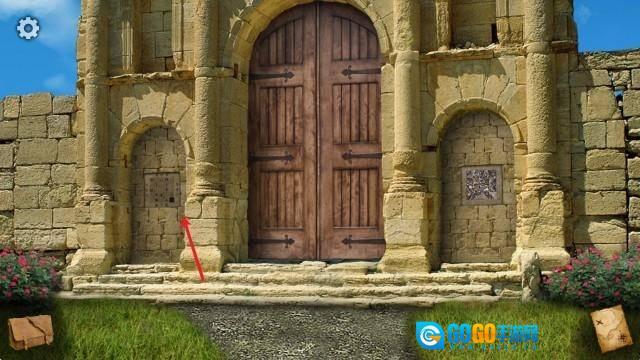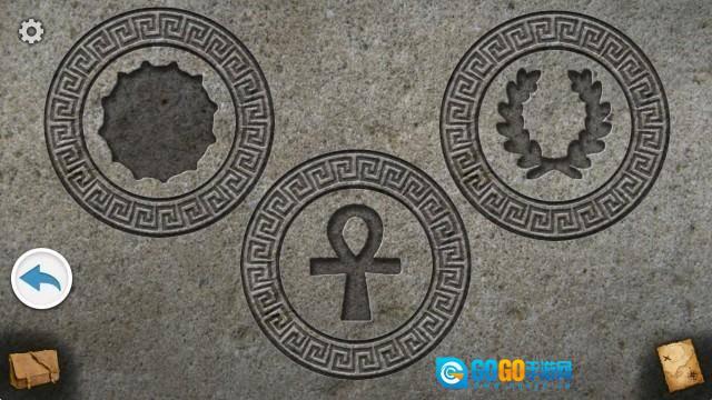 1、简单过一下剧情后就正式进入场景,这里的大门是关着的,需要点击两侧的图案来解开谜题。