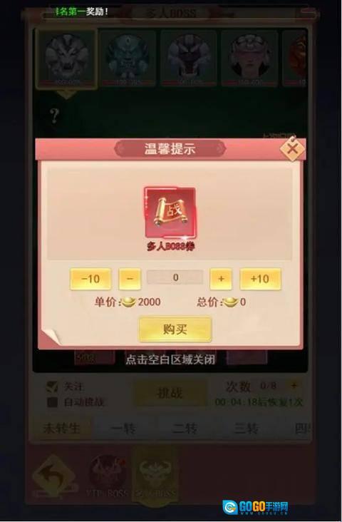 多人BOSS设有次数限制,每日可参与8次。次数用完后有两种恢复方式:一是等待时间自动冷却,二是消耗元宝购买多人BOSS券,即可立即补充次数。