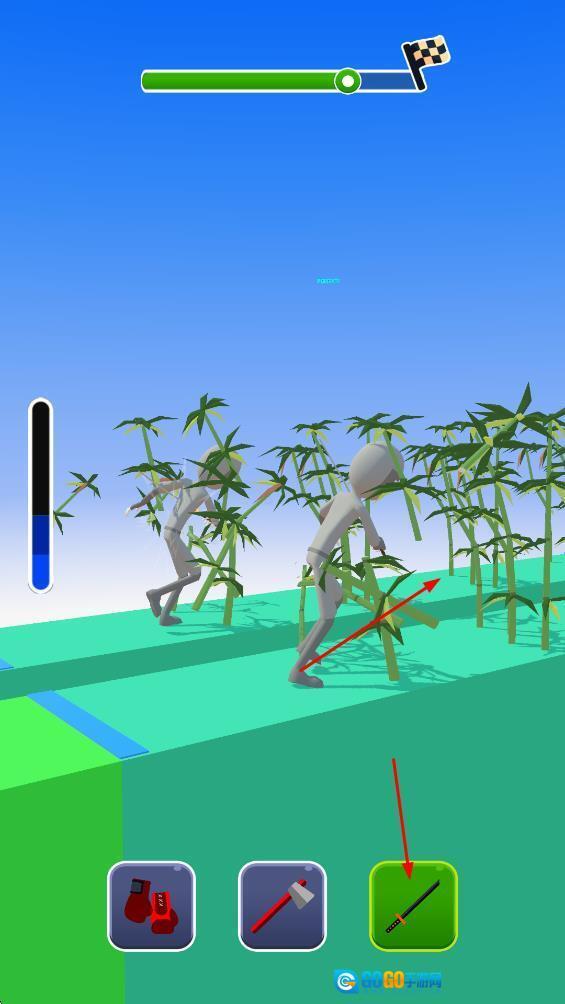 3、临近关卡终点时,切换至武士刀作为武器,通过砍伐竹子类植物的方式,全力朝着终点方向冲刺,从而完成该关卡的挑战。