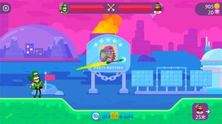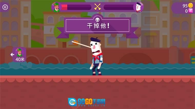 3、弓箭以抛物线方式飞出,以一个角度击中对手。