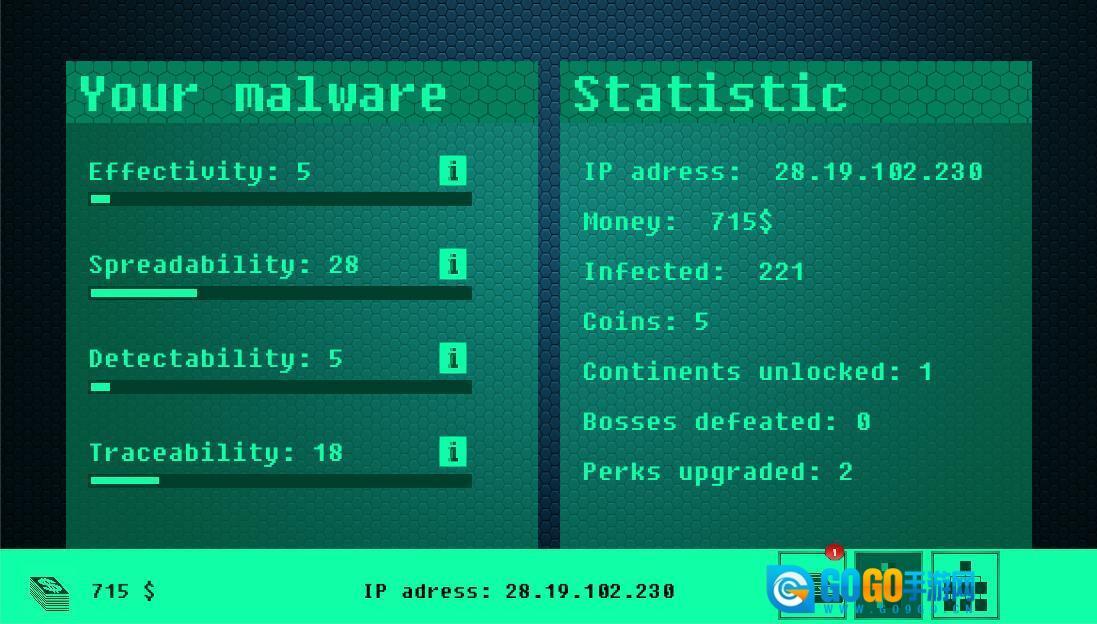 《黑客病毒》是一款考验全局思维的游戏,在这个游戏里,整个世界都成了黑客的狩猎场,无数“肉鸡”正等待着被你捕获,放手去掠夺资源,朝着黑客世界的顶尖位置迈进吧。