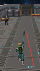 1、在游戏中操控角色时,点击屏幕即可让角色挥动长棍发起攻击,利用武器对前方区域进行打击,以此推进太空舱内的冒险,同时要留意场景里的目标与障碍。