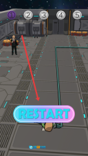 2、要是角色在挑战中失败倒地,界面会弹出RESTART按钮,点击这个按钮即可重新开启当前关卡,玩家可以试着调整策略来完成挑战。