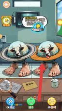 3、展示你如何看穿我的伪装的对话气泡,呈现两个拟人化的牛头形象,它们分别佩戴着不同的圆形装置,这是一个找不同的推理关卡,需要通过识别两者的差异来辨别伪装。