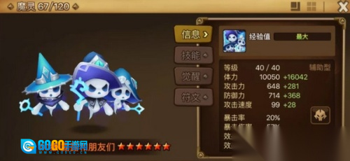这是组合阵中可合成的魔灵,建议优先合成它。作为全能型魔灵,推塔、竞技场、地下城都离不开它。它具备嘲讽对手的能力,还能为一名队友提供无敌状态。属性堆叠方面,需重点关注速度、血量、防御与命中。