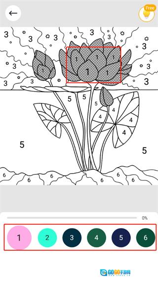 2. 开始上色:进入绘画界面后,在底部的色板中挑选与画面里数字编号匹配的颜色来填充。