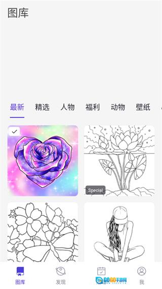 2. 海量优质图库:收录数千幅艺术家精心创作的线稿作品,主题丰富多元,包括古风雅韵、二次元幻想、诱人美食、自然风光等,能满足各类审美需求。