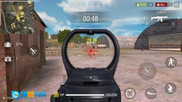 4、最稳妥的策略是待在较高楼层,这里视野开阔,便于提前察觉敌人动向。一旦发现目标,直接滑动屏幕右侧空白区域就能完成瞄准攻击。通常我们在高处发起攻击时,敌人很难定位到我们的具体位置,安全性相当有保障。若遇到距离较远的敌人,还可点击屏幕下方的“瞄准镜”按钮开启步枪瞄准镜,这样能看得更清晰。步枪瞄准镜自带一定的自动瞄准功能,当我们把红点对准敌人后,只需点击攻击键即可;要是敌人有小幅度移动,红点会自动跟随,因此能比较轻松地消灭敌人。新手玩家基本靠这套方法就能撑到后期,之后主要通过躲避和偷袭来击杀敌人,最终不断向缩小的安全区靠近,与最后的对手展开决战。至于能否拿下第一,就得看大家的实力和些许运气了。