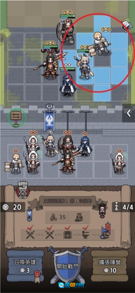 进入神王城堡开启战斗后,角色栏的左上角会出现一个木牌子,它被绿色圆圈标记着。