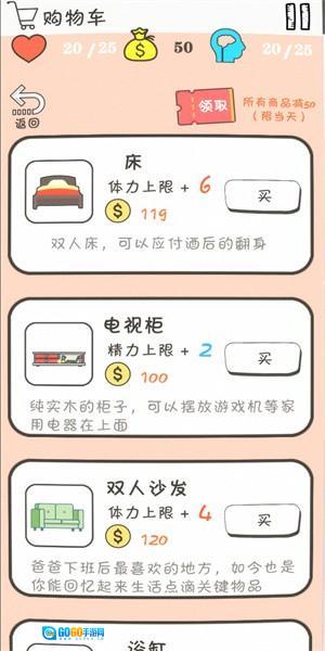 4. 随着游戏的推进,生活条件能够逐步得到改善,玩家会从栖身桥洞,到住进公寓,最终拥有属于自己的房子。
