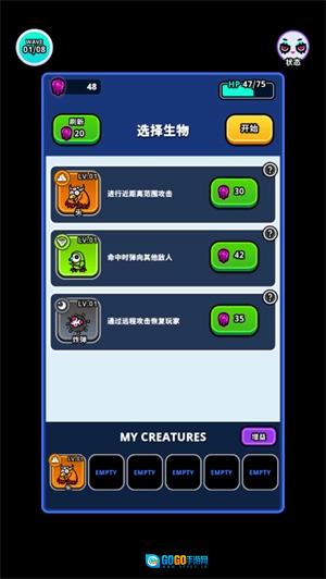 4、清理完一波敌人后,会进入商店界面,这时可以用收集到的能量球购买宠物。
