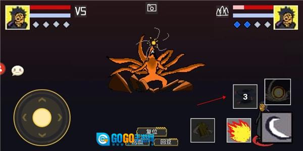 2、左侧控制角色移动,右侧用于攻击与释放必杀技;