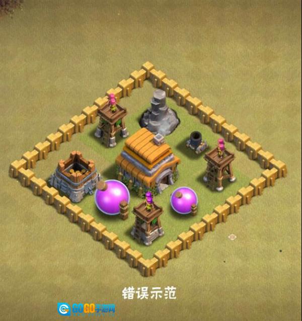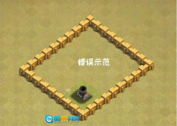 2、很多玩家在布局底本时,会用一层墙把一圈建筑围起来,这类阵型通常炸开一堵墙就能达成我们的目标。