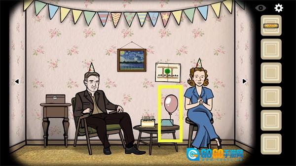 1、轻轻点击悬浮着的红色气球,接着将视线集中到桌面正中间的礼盒上,留意盒面丝带的打结样式。
