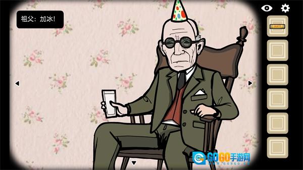 7、把冰块放进爷爷面前的酒杯,等他点头后,他会指向留声机——这时要留意右侧墙上的风景画框,启动图形消除小游戏:拖动相同色块完成三次匹配,就能掉落一枚黑胶唱片。