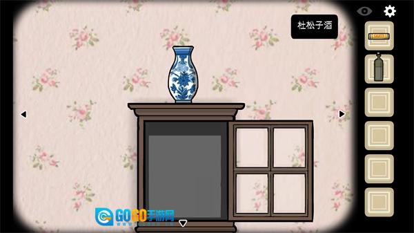 3、将视角向左平移,打开老式立柜底层的抽屉,从中取出一瓶标签模糊的琥珀色酒液。