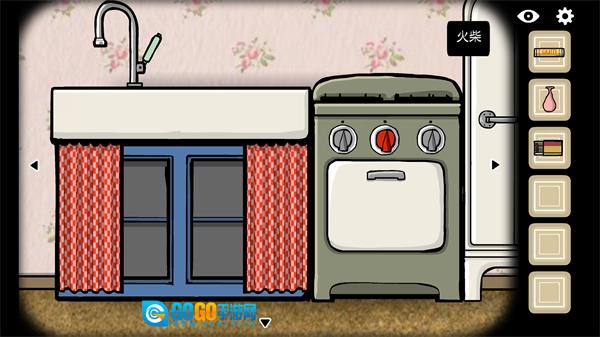 5、把地板上散落的气球捡起来,然后切换到厨房场景,蹲下身查看水槽下方的暗格,从中取出一盒火柴。