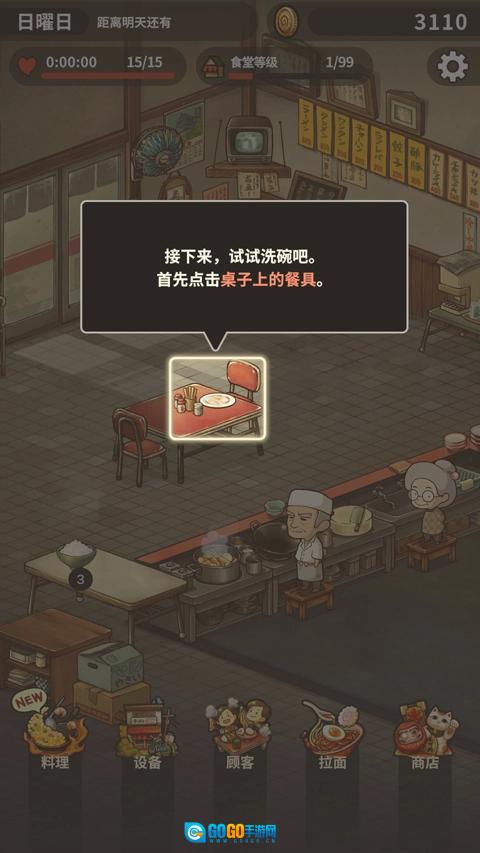 5、顾客用餐过程中,您可点击屏幕来加快其用餐速度。待顾客用餐完毕,您需要收拾餐具并进行清洗,完成这些操作后,新手教程便会结束。