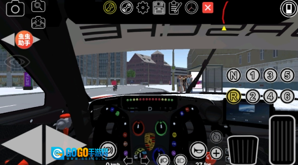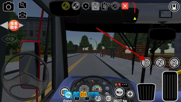 2、切换到第一人称模式后,留意观察右侧虚拟按键区域里的档位控制——D档是用来前进行驶的,N档属于空挡状态,R档则是用于倒车操作的,只有合理切换档位,才能实现平稳起步。