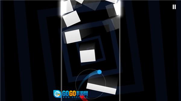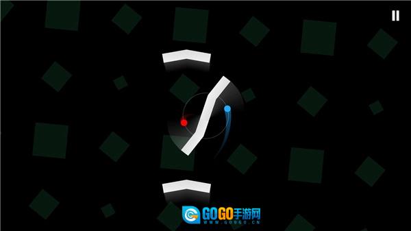 核心机制是“双轨协同规避”:红蓝两个球在同心圆轨道上保持恒定速度前进,玩家通过左右触控来控制整个轨道的旋转角度。障碍物会以不同的朝向、间距和速度切入路径,玩家需要在旋转轨道的过程中精准计算两个球与障碍物的相对位置,保证任意一个球体都不会碰到白色结构。失败并非由于操作失误,而是时机判断上存在0.1秒的偏差。