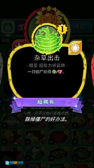 b、杂草出击:带有-2/-2的减益效果,是克制高攻击力低防御力单位的利器。当遇到“山羊”这类成长型僵尸时,它能打断对方的血量叠加节奏;而在对抗“闹鬼僵尸”时,又可以延缓其衍生物的生成时间,为后续的清场操作争取到宝贵的机会窗口。