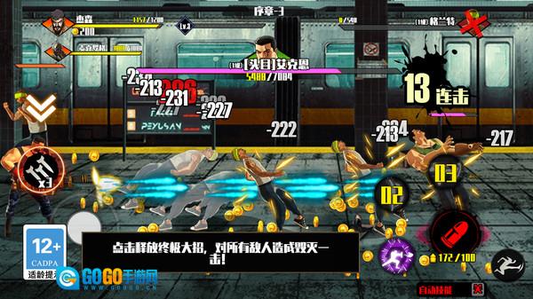 3. 动态场景交互机制,能将对手砸向广告牌、踢进便利店货架,环境破坏会即时作用于战斗策略与视觉呈现。