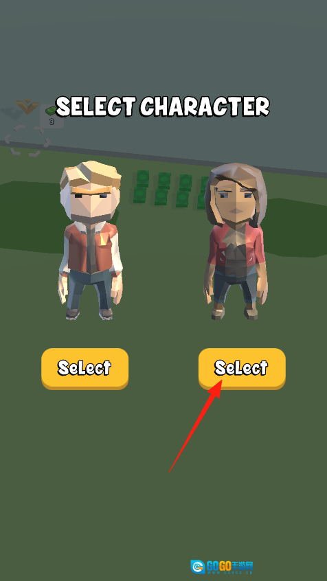 2、进入选角色界面后,会看到有两个角色可供选择,此时点击右侧角色下方的Select按钮,即可选定该角色。选好角色后,就可以操控她进行游戏,在不同的场景中展开行动,完成各类挑战,感受专属角色带来的独特玩法体验。