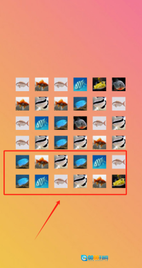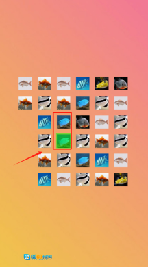 2、查看五行六列的彩色鱼图片,被红色框标注的鱼是关键,依照提示进行操作即可。