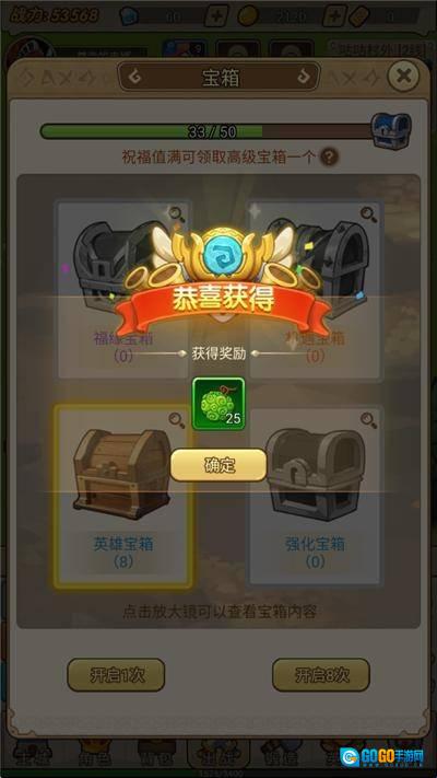4、打开4种宝箱增加祝福值1,1,2,4。