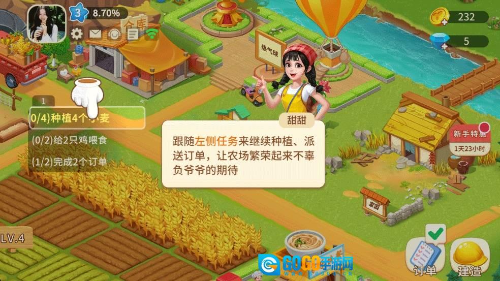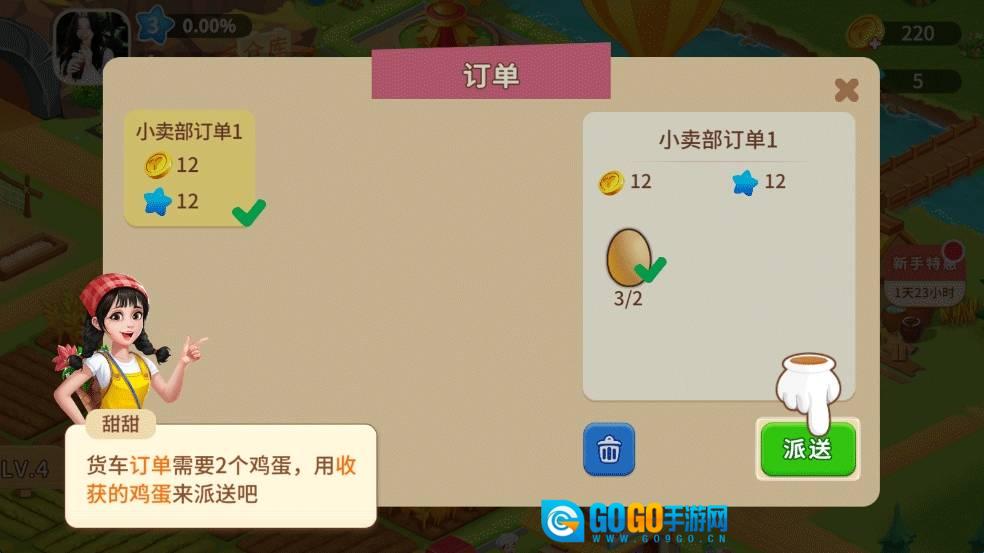 10、可以继续通过左侧任务栏进行种植和派送订单,让农场繁荣起来,不辜负爷爷的期待了。