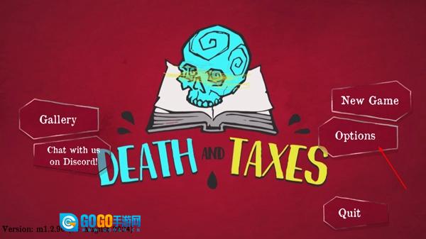 1、启动《死亡与税赋》,进入游戏后,点击右侧的Options选项;