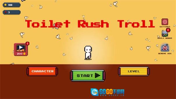 《只有一道门马桶版》是一款休闲闯关小游戏,它是在《只有一道门》的基础上,加入马桶小人元素的全新改版。玩家将操控一位坐在马桶上的角色,帮助它通过跳跃躲避障碍,在不同平台间来回穿梭,最终完成通关。游戏过程充满趣味,各种出其不意的陷阱让人忍俊不禁,玩家需要通过一次次细节满满的闯关,凭借自己的操作能力挑战更多关卡。
