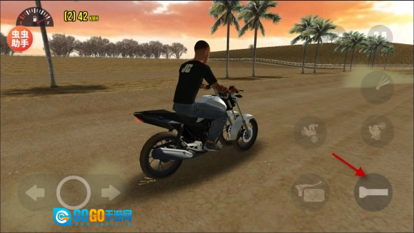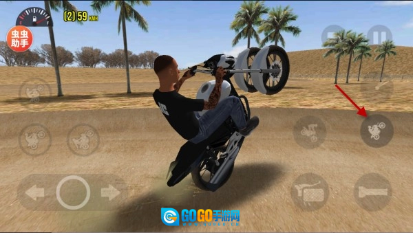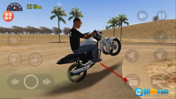 1、按住箭头所指的按钮就能加速前进,方向可通过左侧进行控制。