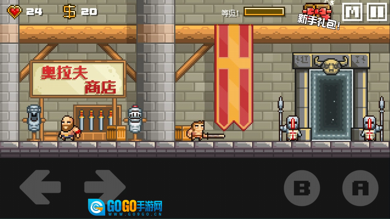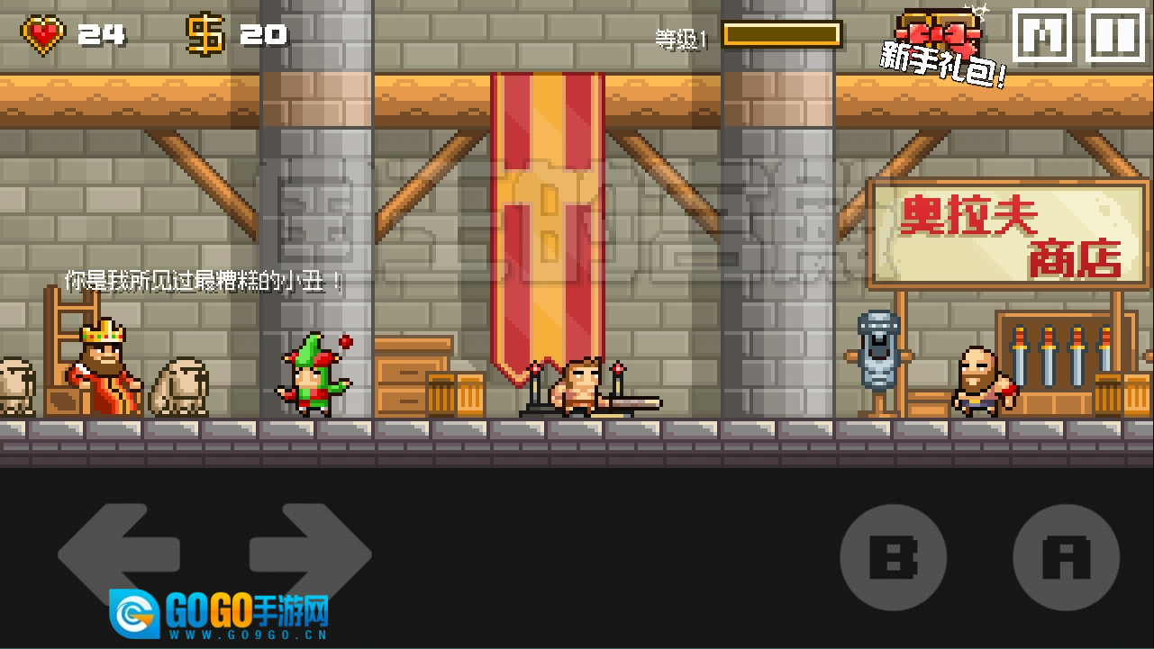操作起来并不难,屏幕左下方有两个方向键负责控制左右移动。B键用于攻击,A键是跳跃键,长按A键则会向下跳。要注意别被怪物攻击到。