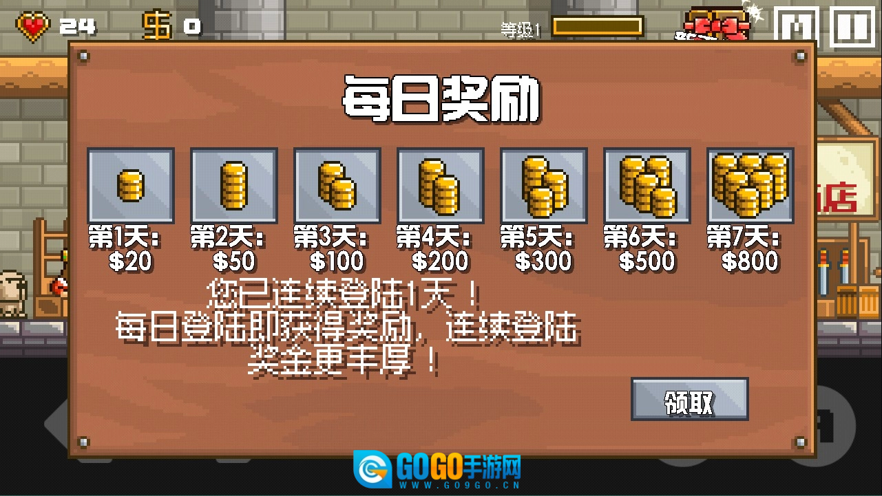每日登入获取每日奖励