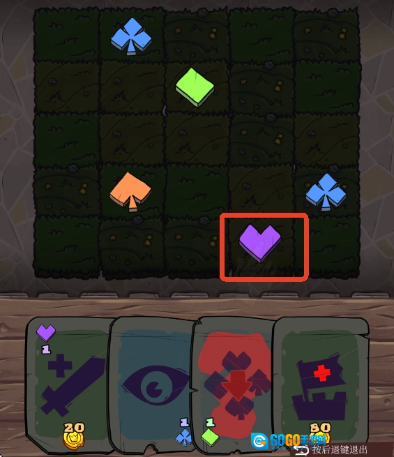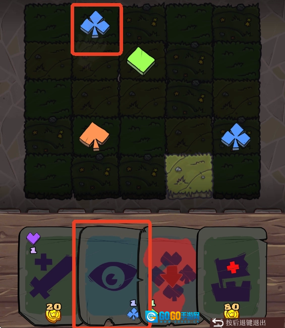 2、点击拾取蓝色符文,这样就能使用透视卡,驱散黑雾以探索房间的各个区块并获取金币。