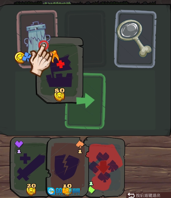 5、回收时要留意回收桶,它会“咬人”并造成1点伤害。获取绿色符文后,就能使用治疗卡片了。