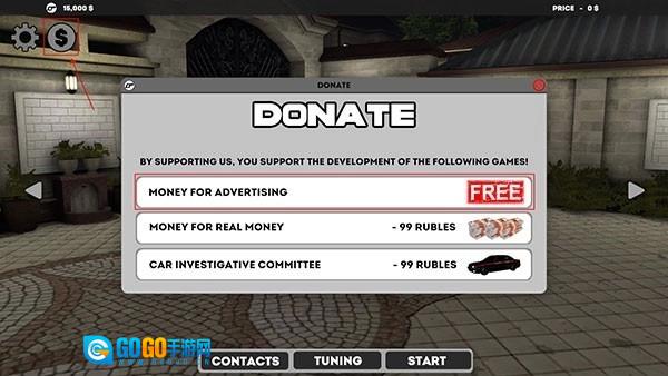 2、若玩家当前拥有的金币不足以驾驶目标车辆,可点击左上角的“金币”图标,选择第一个“free”选项,即可获取5000金币。