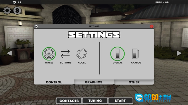 3、点击右上角的“设置”图标,就能设置驾驶模式,可选择方向盘控制或晃动控制。