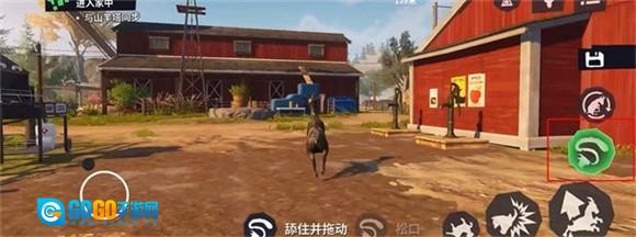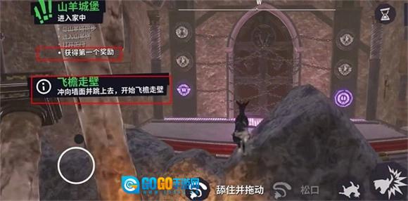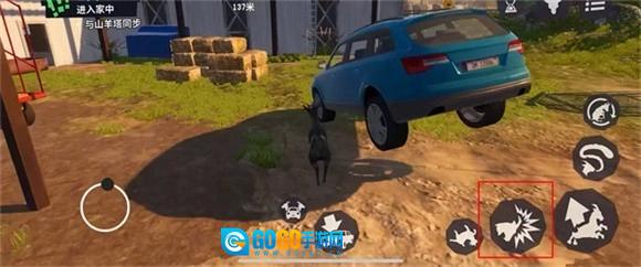 4、若要移动物品,点击红框内的图标,山羊便会咬住并拖动该物品;再次点击图标,山羊就会松口放下物品。